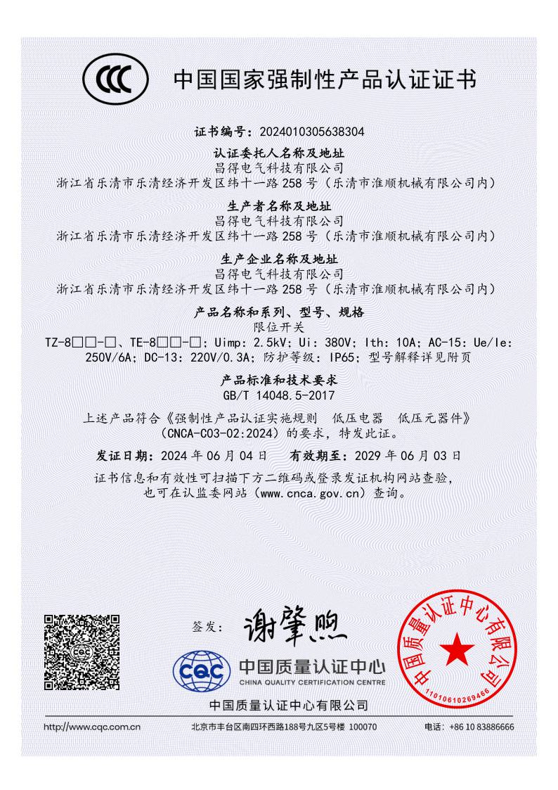 CCC CZ-3行程開關