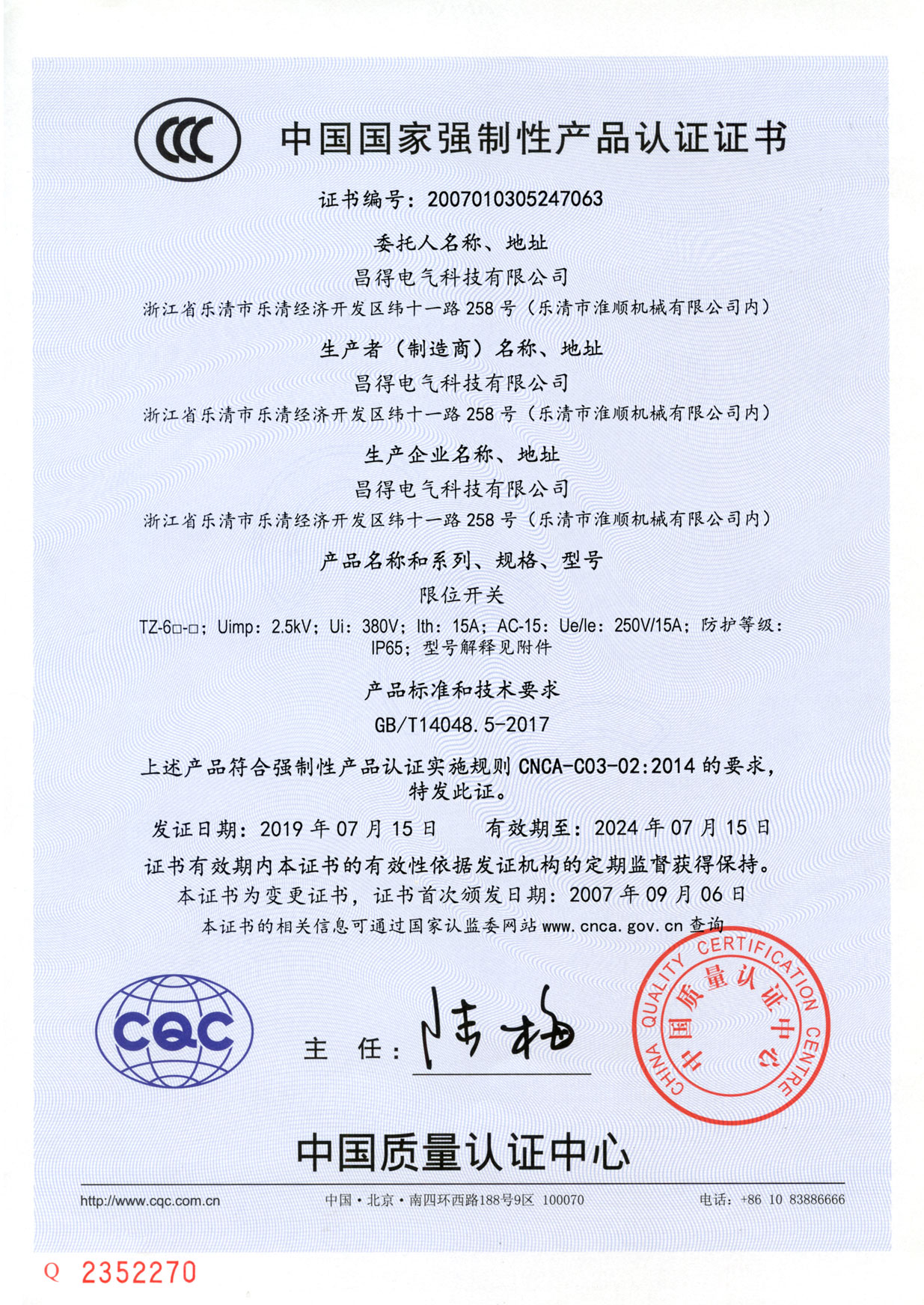 - 認證證書